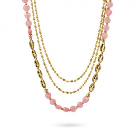 Collana girocollo multifilo con boules rosa - LM_GR15