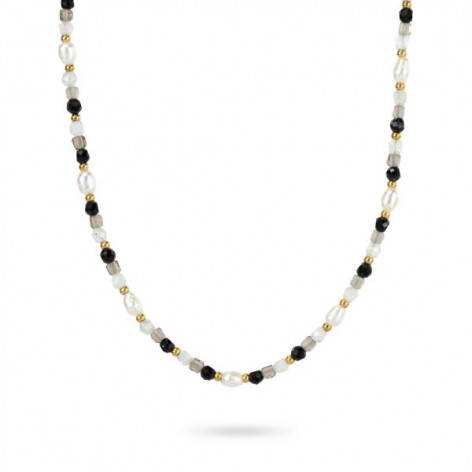 Collana girocollo con pietre multiformi nero, grigie...