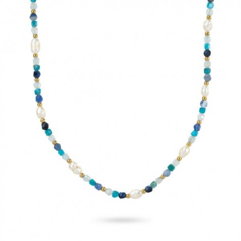 Collana girocollo con pietre multiformi blu,...