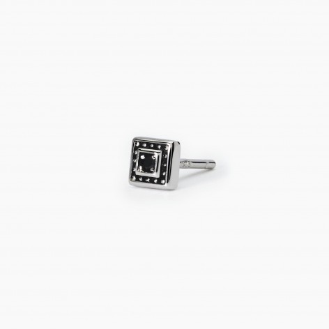 Orecchino uomo con zircone nero e finitura a rombi -...