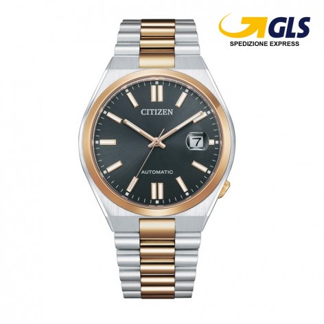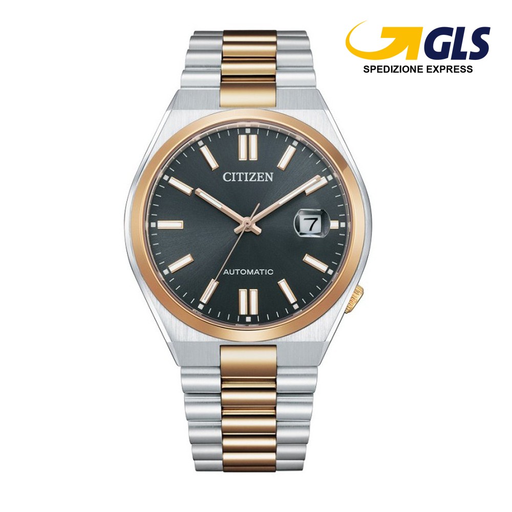 Orologio uomo citizen, NJ0154-80H, collezione tsuyosa, movimento automatico, solo tempo, cassa in acciaio 40mm, quadrante nero con datario a bolla, vetro zaffiro, bracciale in acciaio bicolore, resistenza all'acqua 5atm.