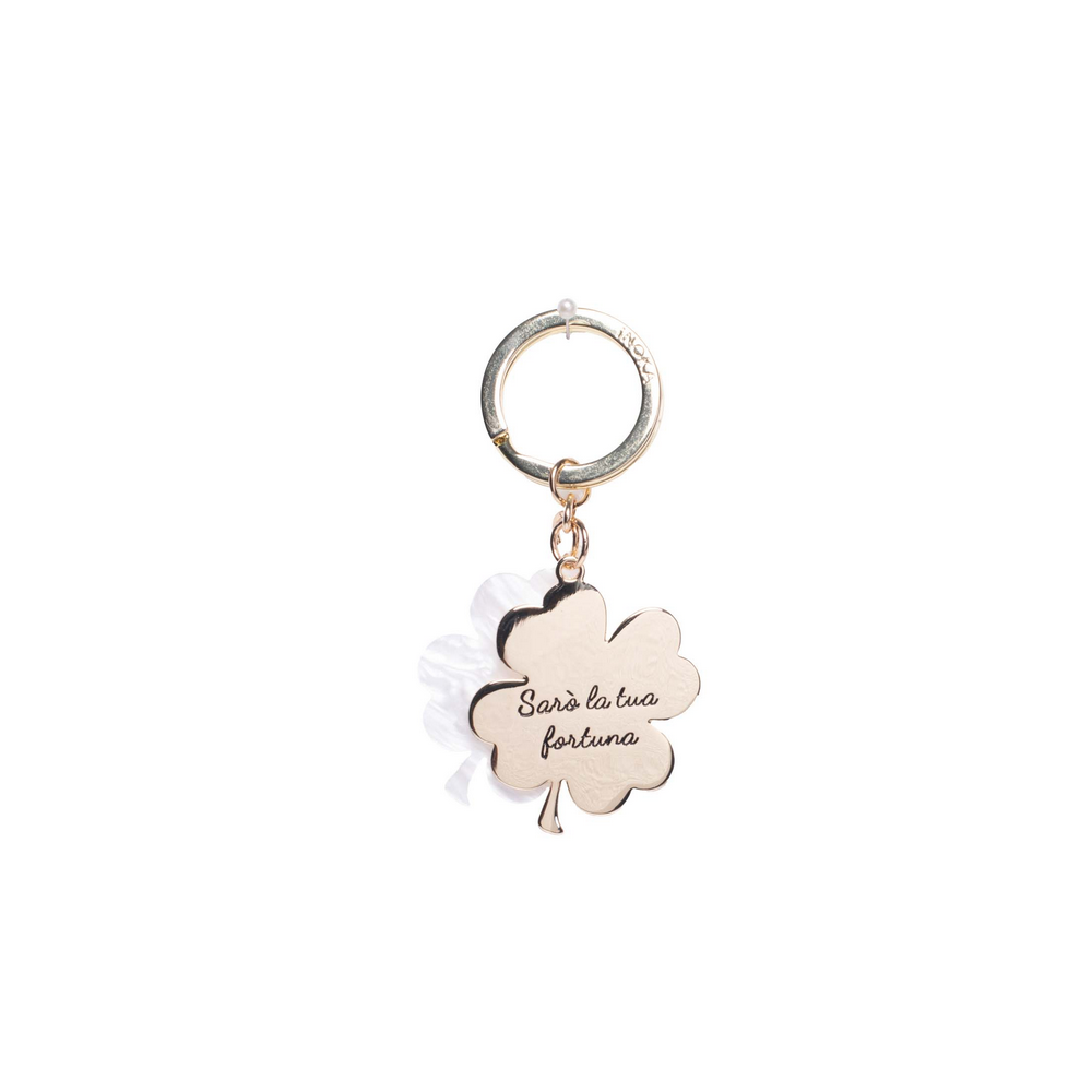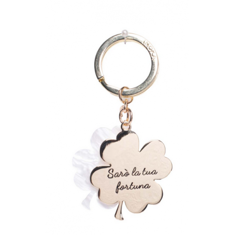 Portachiavi Doppio Quadrifoglio Bianco/Oro - Margot TKSP 453