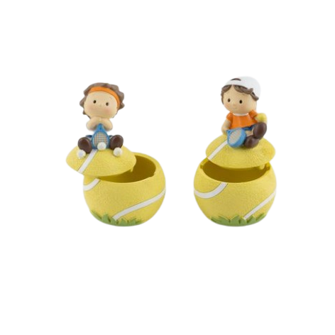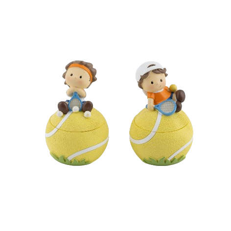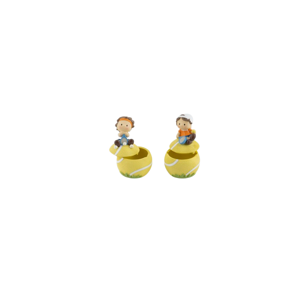 Scatolina decorativa in resina con tennista. 2 soggetti assortiti