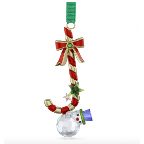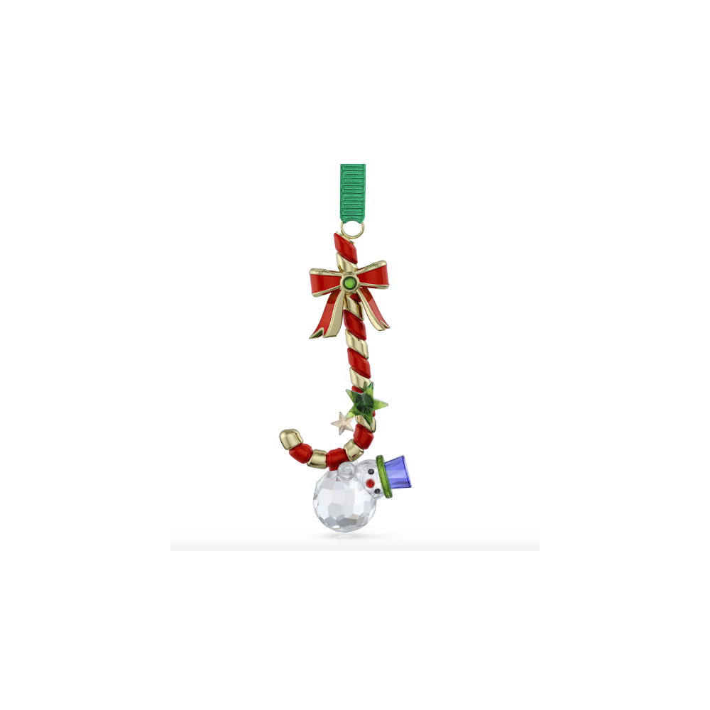 Dolce delizia cristallizzata, questa decorazione a forma di bastoncino di zucchero emana allegria e l’incanto del Natale. Il design, realizzato con 266 sfaccettature nelle tipiche tonalità natalizie. presenta un lucente bastoncino di zucchero da cui pende un pupazzo di neve. Appeso su un nastro gros-grain verde, questo ornamento è completato da lucidi dettagli metallici. Da regalare ad una persona cara o da posare sotto l’albero per regalare un sorriso a chi lo guarda. Oggetto decorativo. Non è un giocattolo. Non adatto ai bambini di età inferiore a 15 anni.