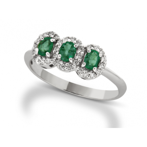 Anello in oro bianco con diamanti e smeraldo - Armonie Gioielli AN3038S