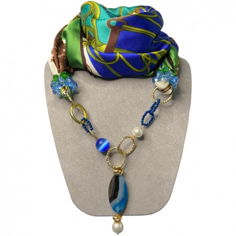 I foulard gioiello Rosada sono pezzi unici realizzati a mano, dove tessuti leggeri incontrano dettagli preziosi. Ogni creazione unisce eleganza e originalità, con pietre naturali, sfumature luminose e combinazioni di colori ricercate.