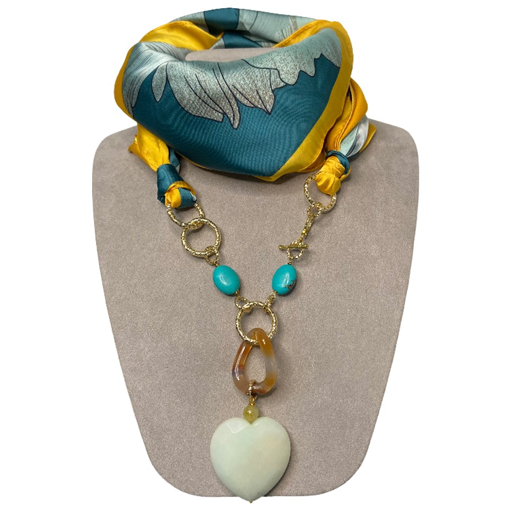 I foulard gioiello Rosada sono pezzi unici realizzati a mano, dove tessuti leggeri incontrano dettagli preziosi. Ogni creazione unisce eleganza e originalità, con pietre naturali, sfumature luminose e combinazioni di colori ricercate.