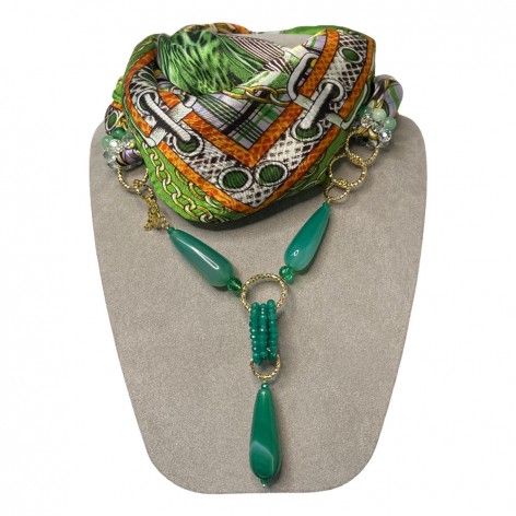 I foulard gioiello Rosada sono pezzi unici realizzati a mano, dove tessuti leggeri incontrano dettagli preziosi. Ogni creazione unisce eleganza e originalità, con pietre naturali, sfumature luminose e combinazioni di colori ricercate.