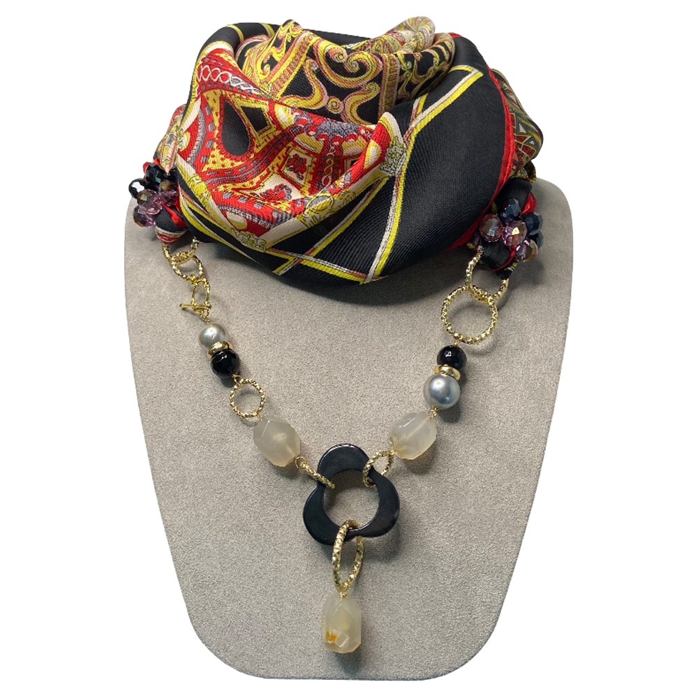 I foulard gioiello Rosada sono pezzi unici realizzati a mano, dove tessuti leggeri incontrano dettagli preziosi. Ogni creazione unisce eleganza e originalità, con pietre naturali, sfumature luminose e combinazioni di colori ricercate.
