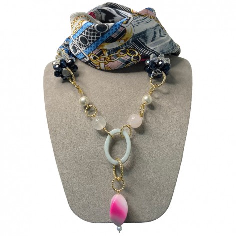 I foulard gioiello Rosada sono pezzi unici realizzati a mano, dove tessuti leggeri incontrano dettagli preziosi. Ogni creazione unisce eleganza e originalità, con pietre naturali, sfumature luminose e combinazioni di colori ricercate.