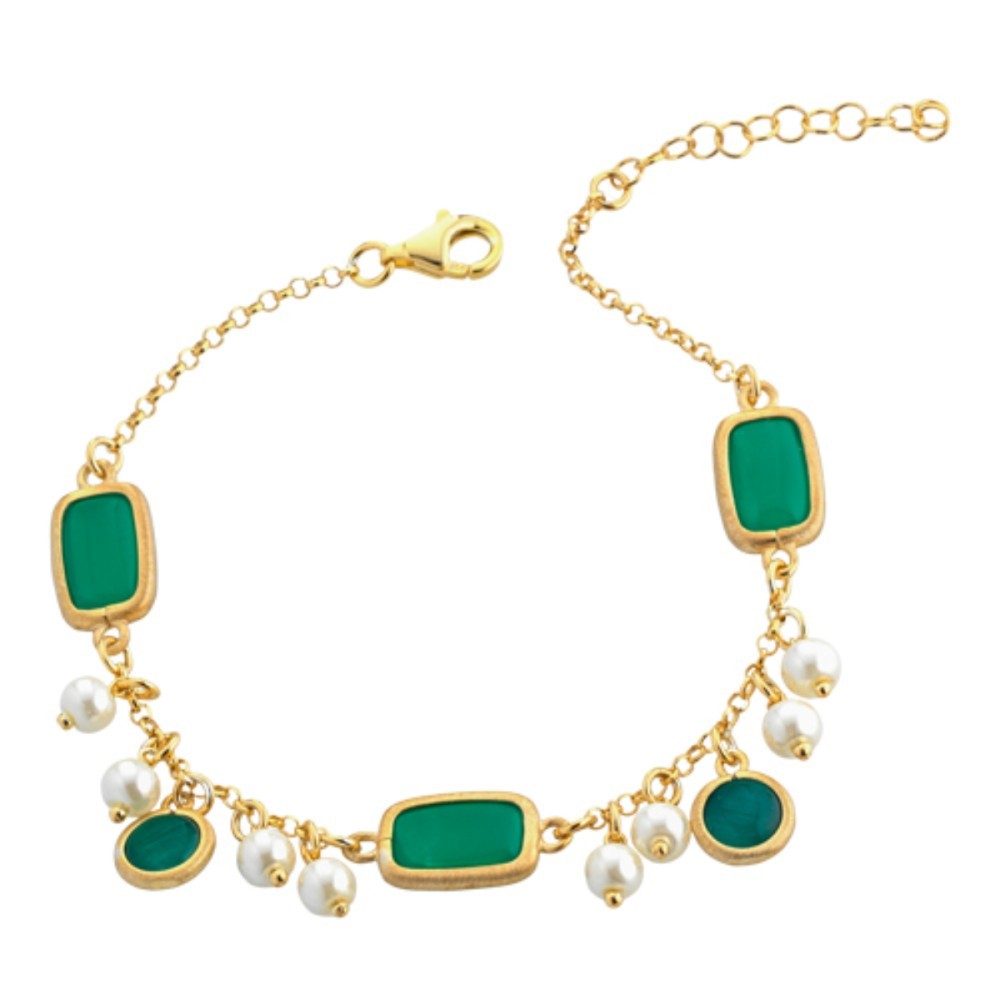 Gli charms in pietre verdi e perline lo rendono delicato e affascinante.