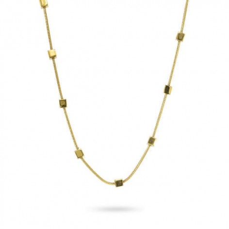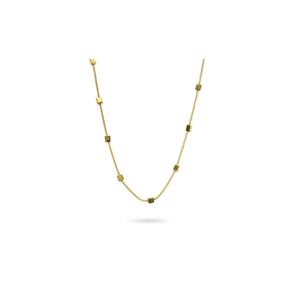 Collana girocollo in acciaio placcato oro giallo con intercalari dalla forma quadrata