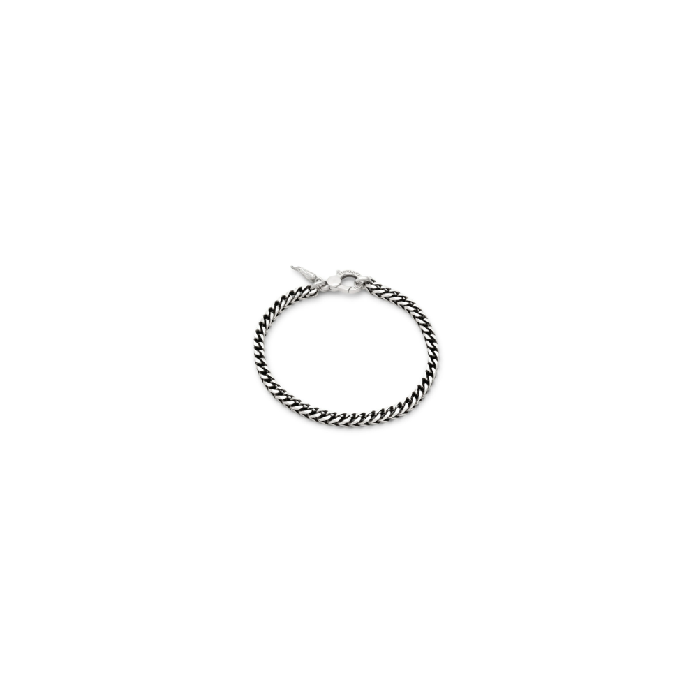 Compatta e armoniosa, la maglia in argento di questo bracciale cattura la luce con naturale uniformità, generando riflessi delicati e continui. Ne nasce un gioiello senza tempo, dal carattere deciso ma raffinato, capace di esprimere una forte personalità con elegante discrezione. Interamente realizzato a mano in azienda.