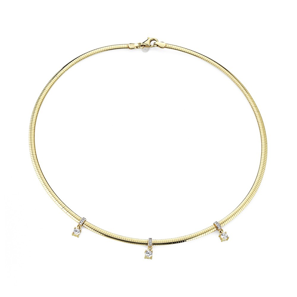 La Collana tubogas - twist è costituita dalla maglia omega con centrali in quarzi bianchi.