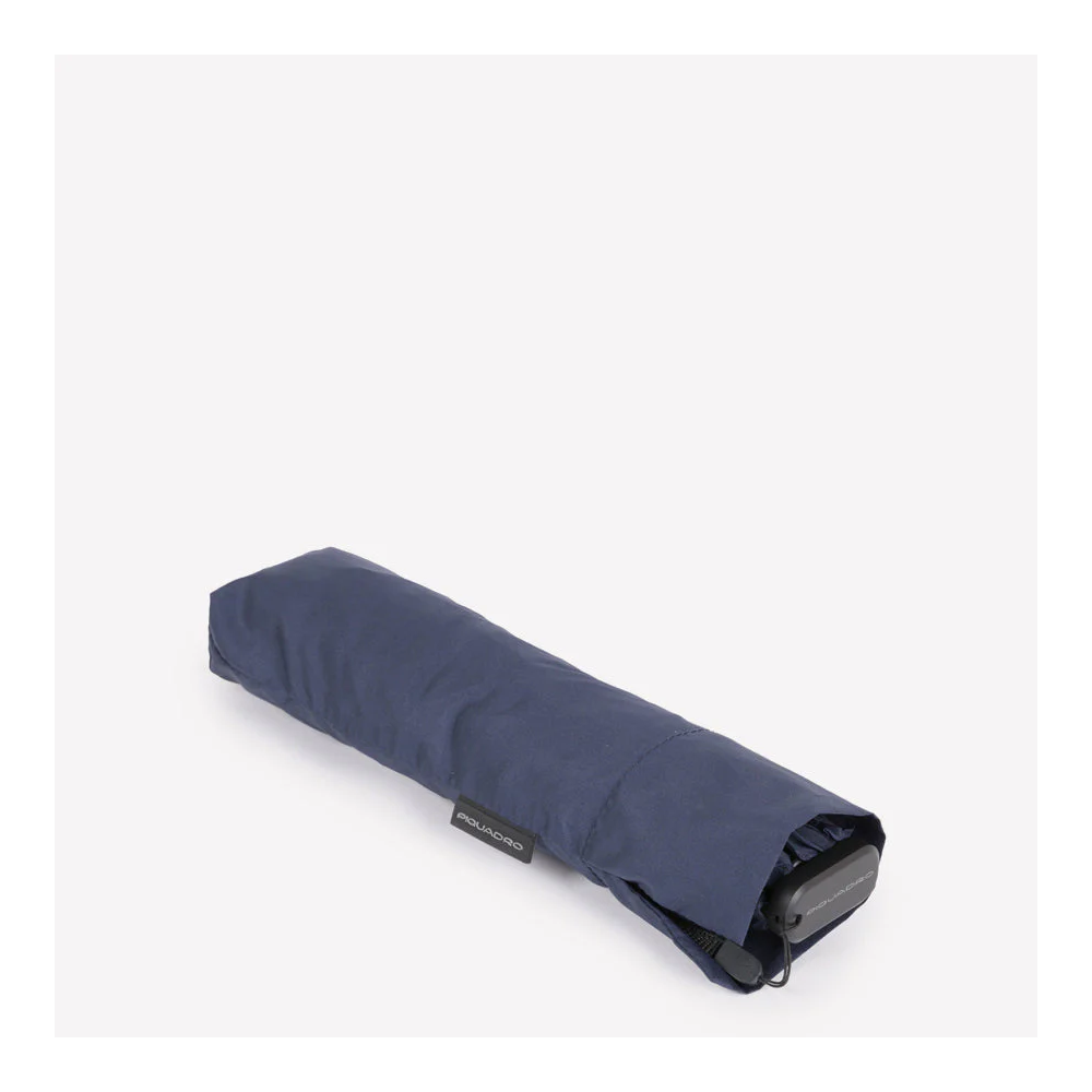 Ombrello mini da viaggio antivento in tessuto riciclato. Colore: Blu