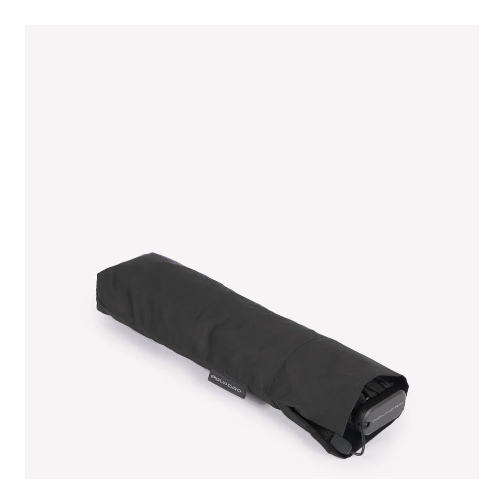 Ombrello mini da viaggio antivento in tessuto riciclato. Colore: Nero