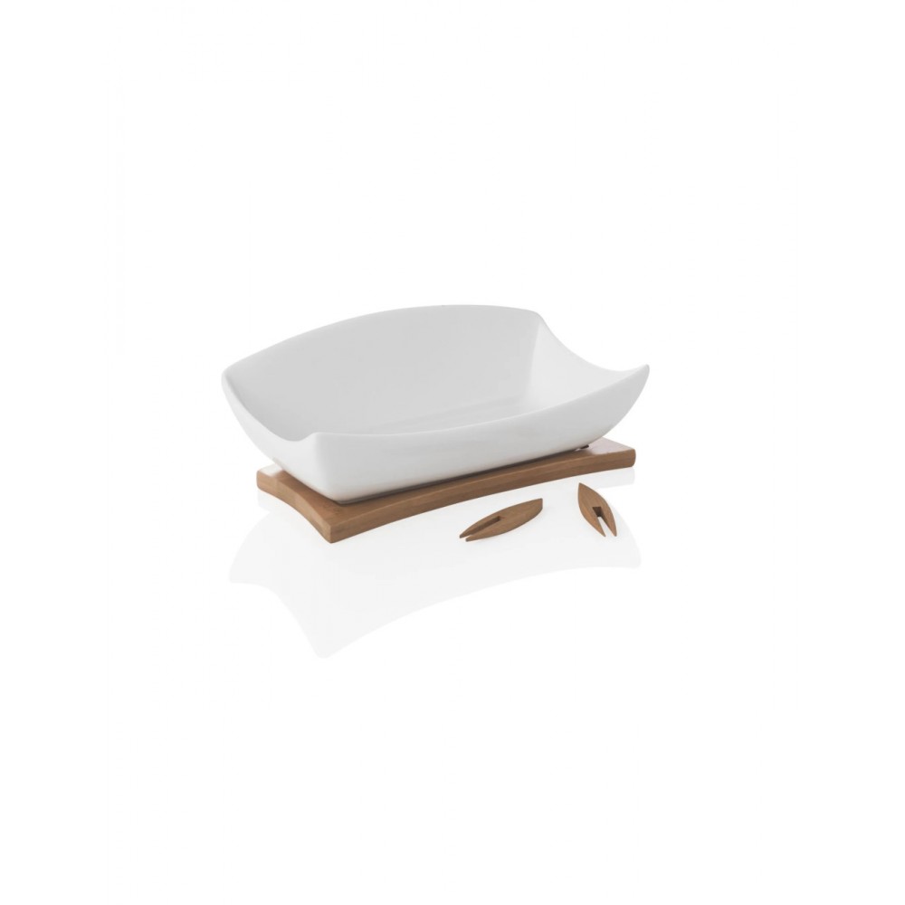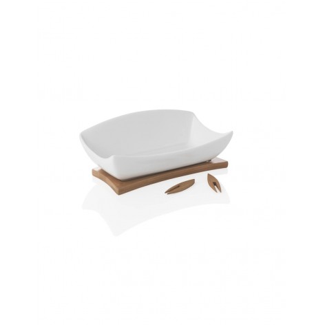 L'antipastiera relax Brandani realizzata in porcellana ed caratterizzata da un pratico supporto e da 3 forchettine in bamboo.