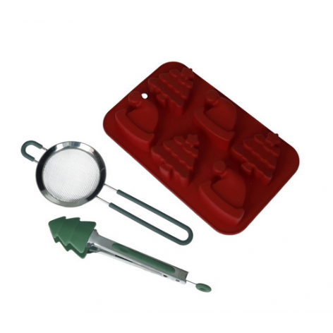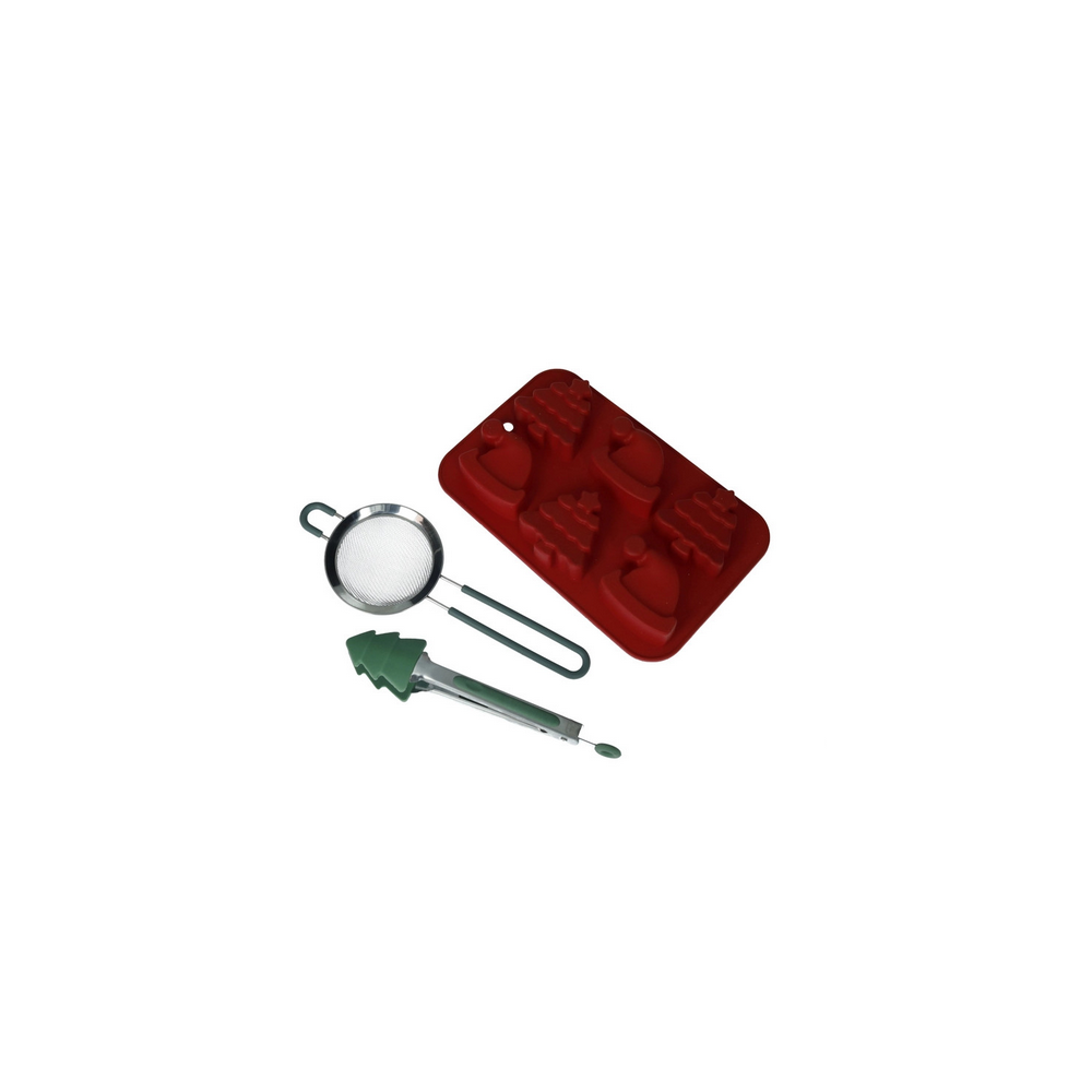 Stampo biscotti di Natale rosso in silicone con pinza in silicone e setaccio inox