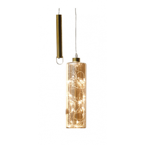 Un design luminoso capace di esaltare ogni spazio. La decoration Atmosfera firmata Brandani unisce l’eleganza del design cilindrico alla praticità della tecnologia LED: appesa in soggiorno, in veranda o accanto alla tavola imbandita, diffonde una luce soffusa e rilassante che impreziosisce ogni ambiente. Un complemento elegante, pratico e suggestivo: la sua colorazione dorata la rende particolarmente adatta per le festività, seppur perfetta da utilizzare tutto l’anno. Posizionala dove vuoi: nessuna limitazione di presa elettrica, funziona con comode batterie!