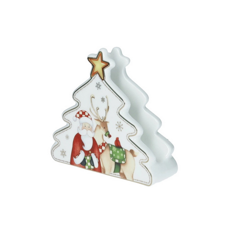 I protagonisti del Natale sfilano sulla tavola con buonumore e spensieratezza: tramandano una storia che sa di tradizione, su candide pagine di porcellana, tessile e melamina. La nuova collezione “Racconti” firmata Brandani accoglie le feste con armonia, eleganza e gioiosità! Il portatovaglioli Racconti, in raffinata porcellana new bone sfoggia i deliziosi personaggi tipici delle feste; la sua forma ad abete natalizio, inoltre, la rende deliziosamente particolare!