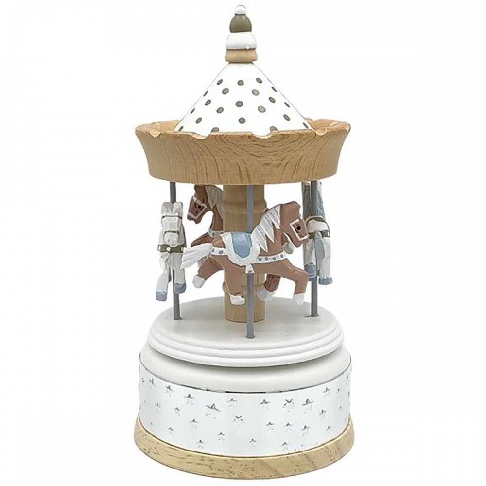 Carillon Valenti con cavalli e stelle da bimbo in legno e argento laminato