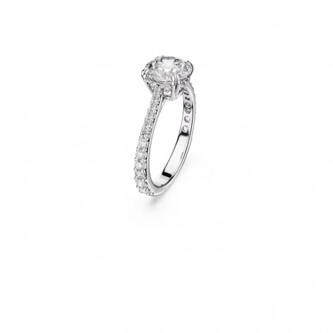 Questo anello Stilla, testimone della potenza della semplicità, è un must del guardaroba. Risultato di una sapiente lavorazione, la pietra centrale dal taglio Princess ruba la scena ed è valorizzata da un elegante pavé sulla galleria e dalla fascia placcata rodio. Indossalo da solo perché brilli in tutto il suo splendore.