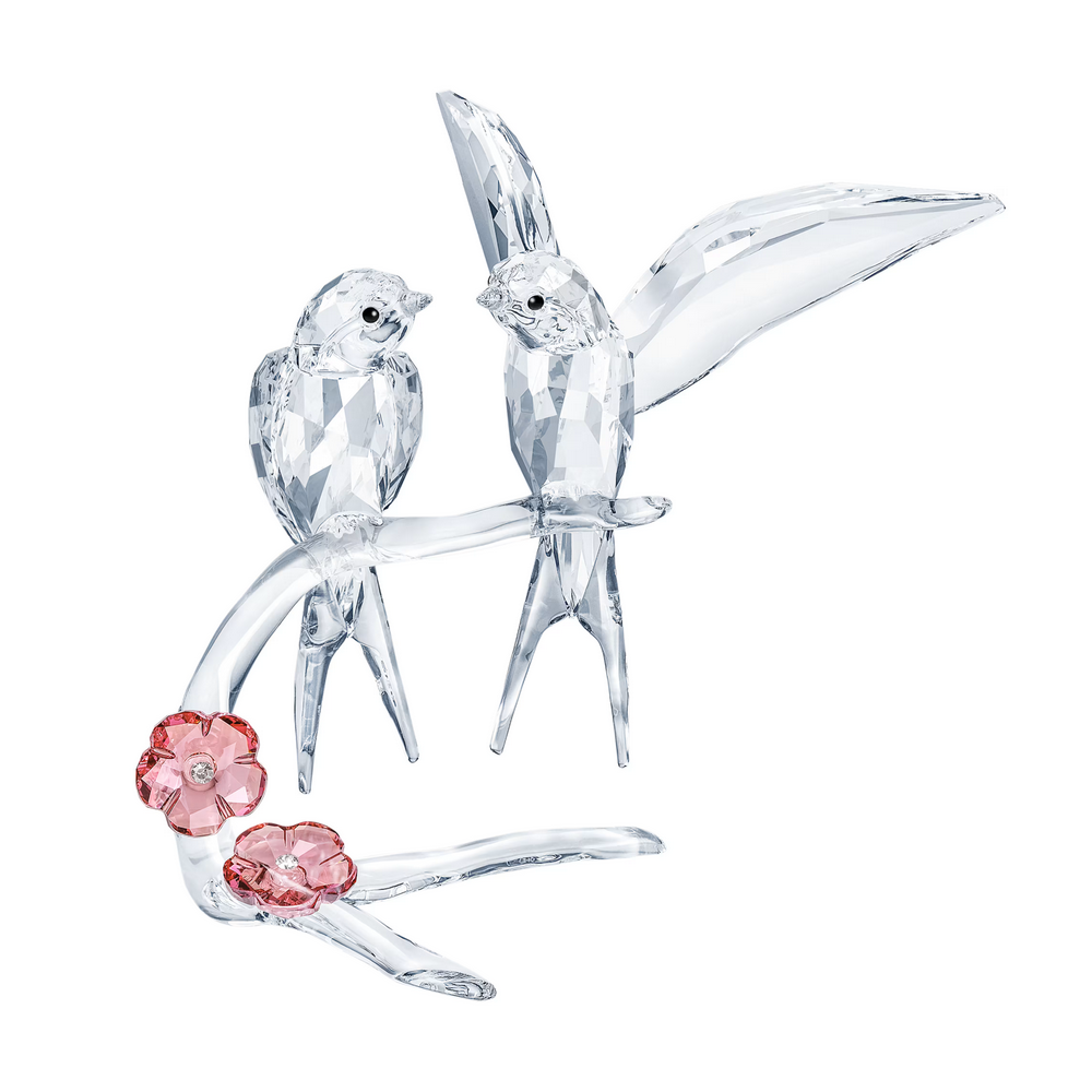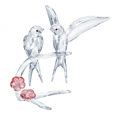 Raffigurando una coppia di rondini appollaiate su un ramo, questo elegante design è realizzato puramente in Clear Crystal, con dettagli di colore rosa, ed è dotato di 863 straordinarie sfaccettature. Simbolo di grazia, felicità e amore, è un meraviglioso regalo simbolico per ogni occasione romantica, oppure un’intramontabile aggiunta ad ogni collezione ispirata alla natura. Oggetto decorativo. Non è un giocattolo. Non adatto a bambini di età inferiore ai 15 anni.