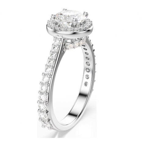 Anello Una Angelic Taglio Round, Bianco, Placcato color argento - Swarovski 5717928