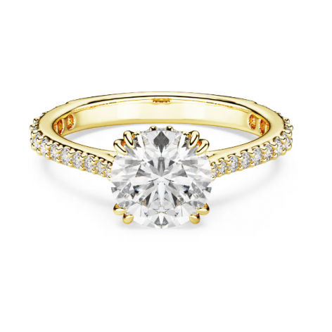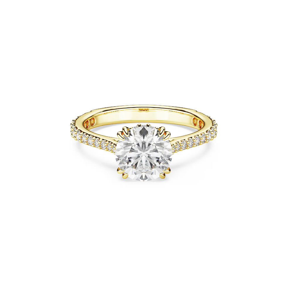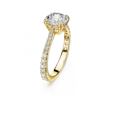 Anello cocktail Stilla, taglio tondo,pavè, bianco, placcato color oro