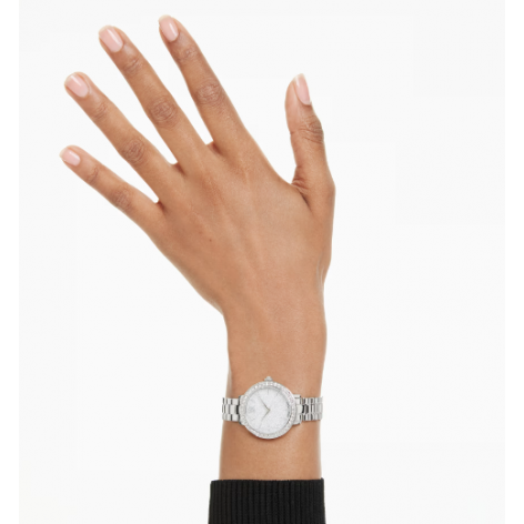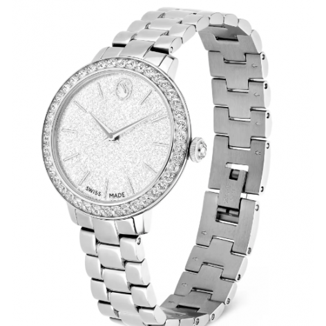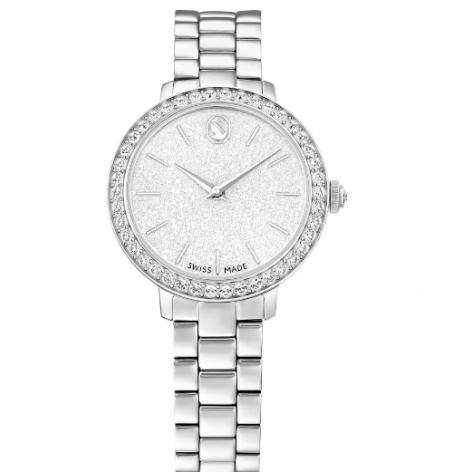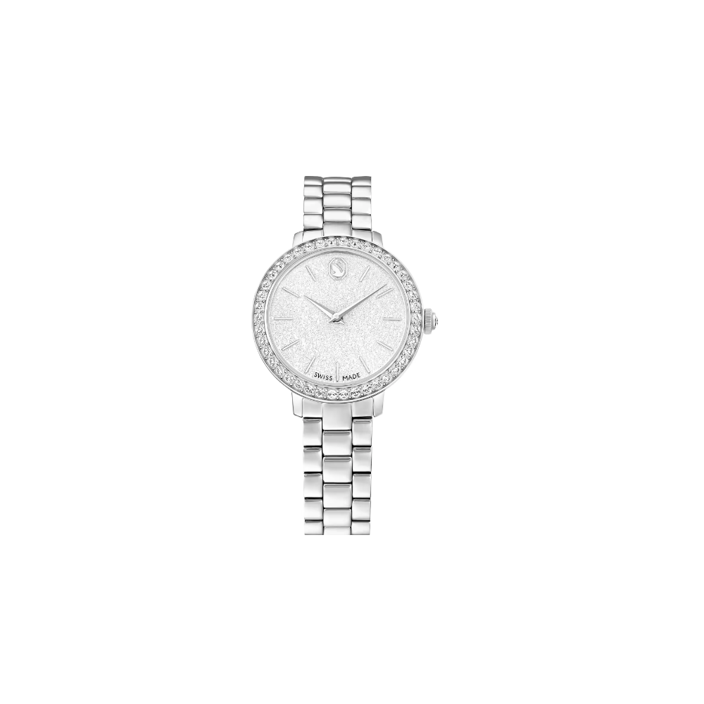 Ispirato ai gioielli Matrix di Swarovski, questo orologio da 30 mm cattura il medesimo senso di stile contemporaneo ed espressivo. Il design in acciaio inossidabile presenta una lunetta a pavé con 42 cristalli incastonati, mentre il quadrante, dalla splendida forma rotonda, è caratterizzato da un effetto glitter e include sottili indici e lancette, oltre al logo cigno a ore 12. Oltre a un ulteriore cristallo incastonato all’interno della corona, questo orologio si distingue per il suo bracciale a tre maglie, che scivola con eleganza attorno al polso. L’orologio Swiss Made è resistente all’acqua fino a 50 m ed è il compagno perfetto per ogni occasione.