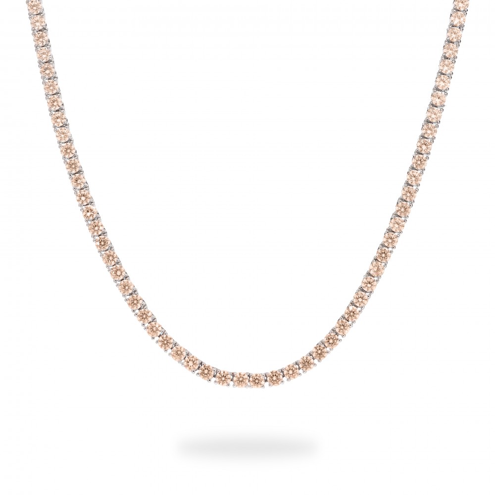 Collana tennis Bronzallure realizzata in lega Golden Rosé con cubic zirconia tonde (3 mm), posizionate su una montatura a 4 griffe. Chiusura a moschettone.