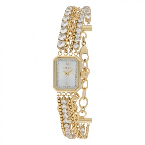 Orologio solo tempo donna Liu-jo con movimento quarzo, collezione Bijou realizzato con cassa in acciaio 316L, spessore 6,2mm, dimensione 15x19mm con quadrante bianco, lancette e indici argentati con cristalli bianchi. Cinturino in acciaio 316L con zirconi bianchi e chiusura a moschettone. Vetro minerale. Resistenza all'acqua di 3ATM.