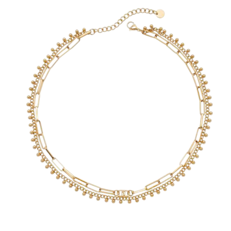 Collana da Donna della marca Liu Jo, il gioiello è realizzato in acciaio gold, multifili, con maglia a catena di vari dimensioni. La lunghezza è di 45cm. La chiusura con moschettone.