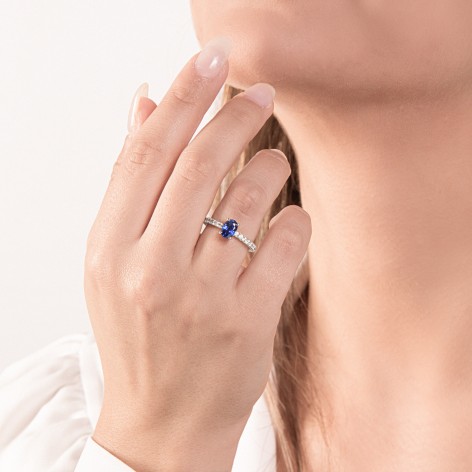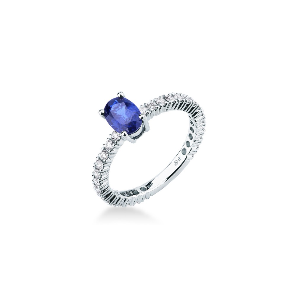 Anello in oro bianco con diamanti e zaffiro - MV207/Z Mirco Visconti