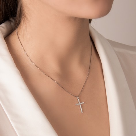 Collana con croce in oro bianco e diamanti - LF127/60 Mirco Visconti