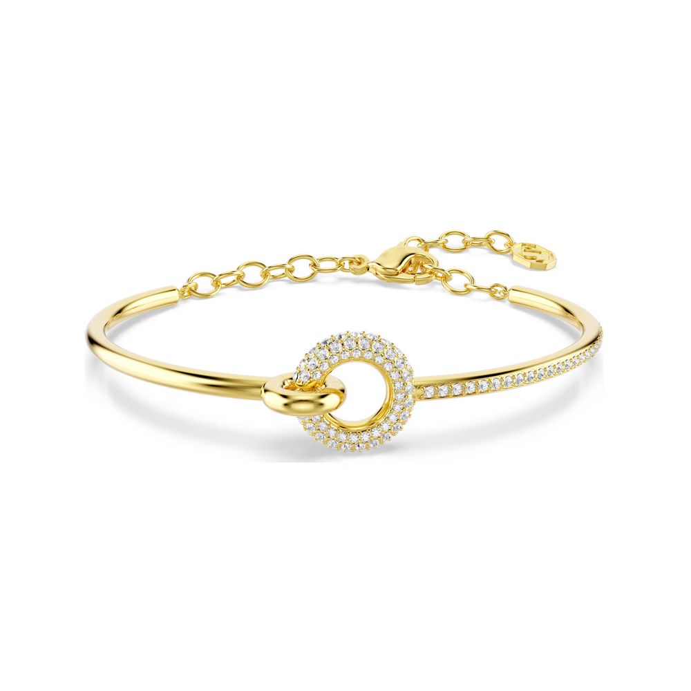 Realizzato con un design metà in metallo e metà in pavé, lo straordinario bangle Dextera prende vita con cristalli Cry incastonati su una superficie lucida placcata in tonalità oro. L'effetto è un bellissimo contrasto e una piacevole geometria circolare che potrai indossare più e più volte.