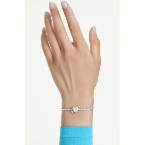 Il vero amore incontra una radiosa luce nel bracciale Swarovski della famiglia Idyllia. La morbida catena è impreziosita da cristalli taglio Round in una montatura placcata rodio, mentre al centro, un scintillante motivo a cuore è trafitto dalla freccia di Cupido in tonalità oro. Adatta la vestibilità alla tua misura utilizzando la chiusura scorrevole e abbina il bracciale ad altri gioielli coordinati della stessa collezione ispirata al romanticismo.