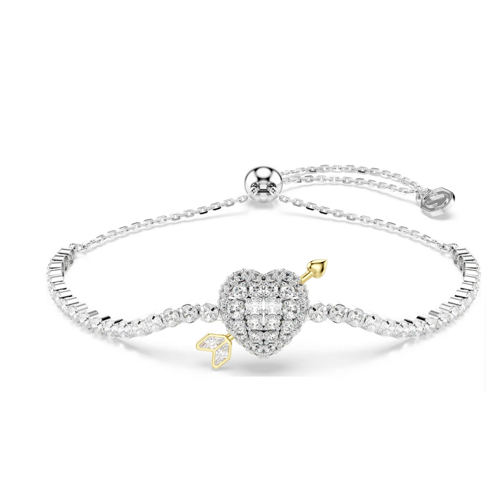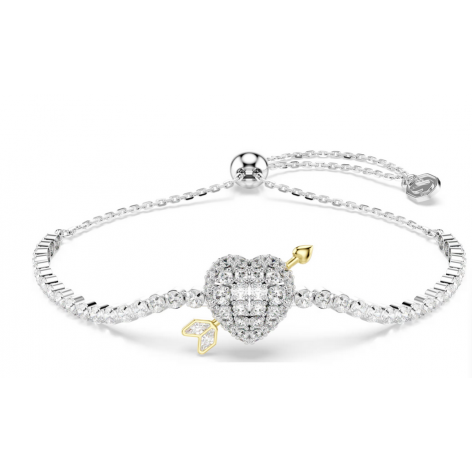 Braccialetto Idyllia Taglio misto, Cuore con freccia, Bianco, Placcato rodio - Swarovski 5742022