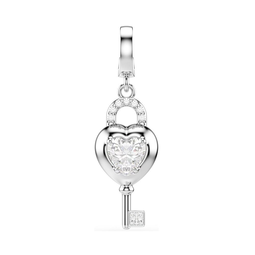 Charm Idyllia Taglio misto, Cuore con chiave, Bianco, Placcato rodio - Swarovski 5742957