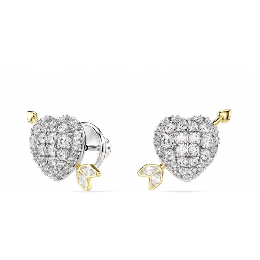Orecchini a lobo Idyllia Taglio misto, Cuore con freccia, Bianchi, Mix di finiture - Swarovski 5737298