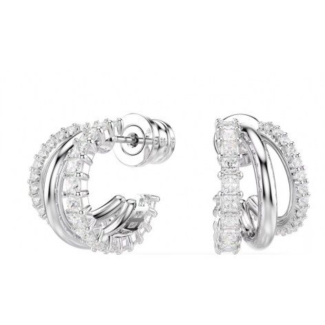 Orecchini a cerchio Hyperbola Taglio Round, Mini, Bianchi, Placcato rodio - Swarovski 5737110