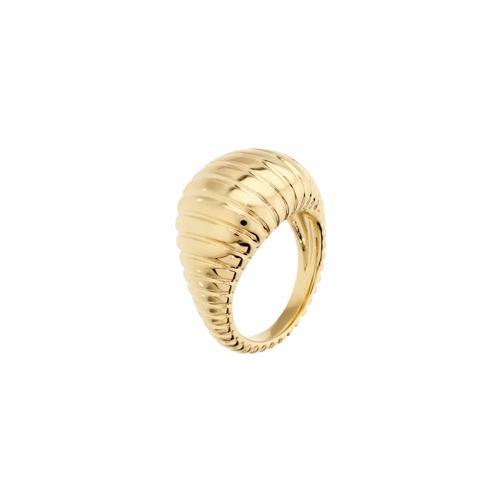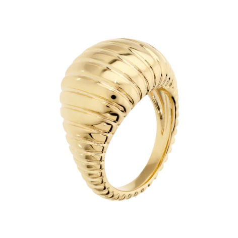 Anello cocktail Etrusca Gioielli realizzato in lega Golden, placcata Oro giallo 18kt, con superficie rigata. Finitura lucida.