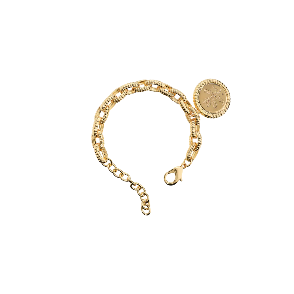 Bracciale Maglie Ovali Texture Rigata con Ciondolo Moneta - ETRUSCA WSET00890.YG