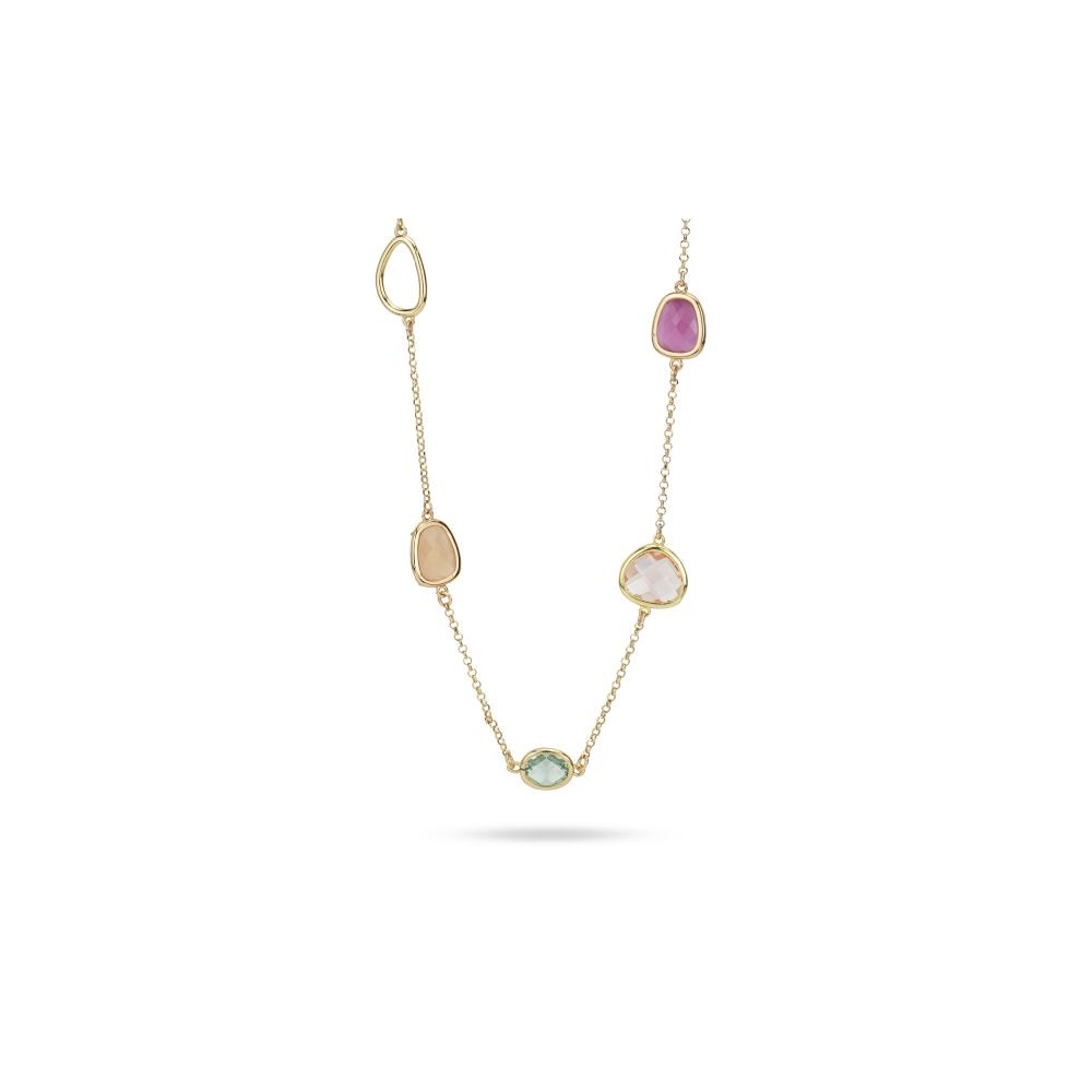 Collana lunga placcata oro giallo con cristalli di colore rosa,ametista, arancio, peach e verde chiaro - Boccadamo XGR747D