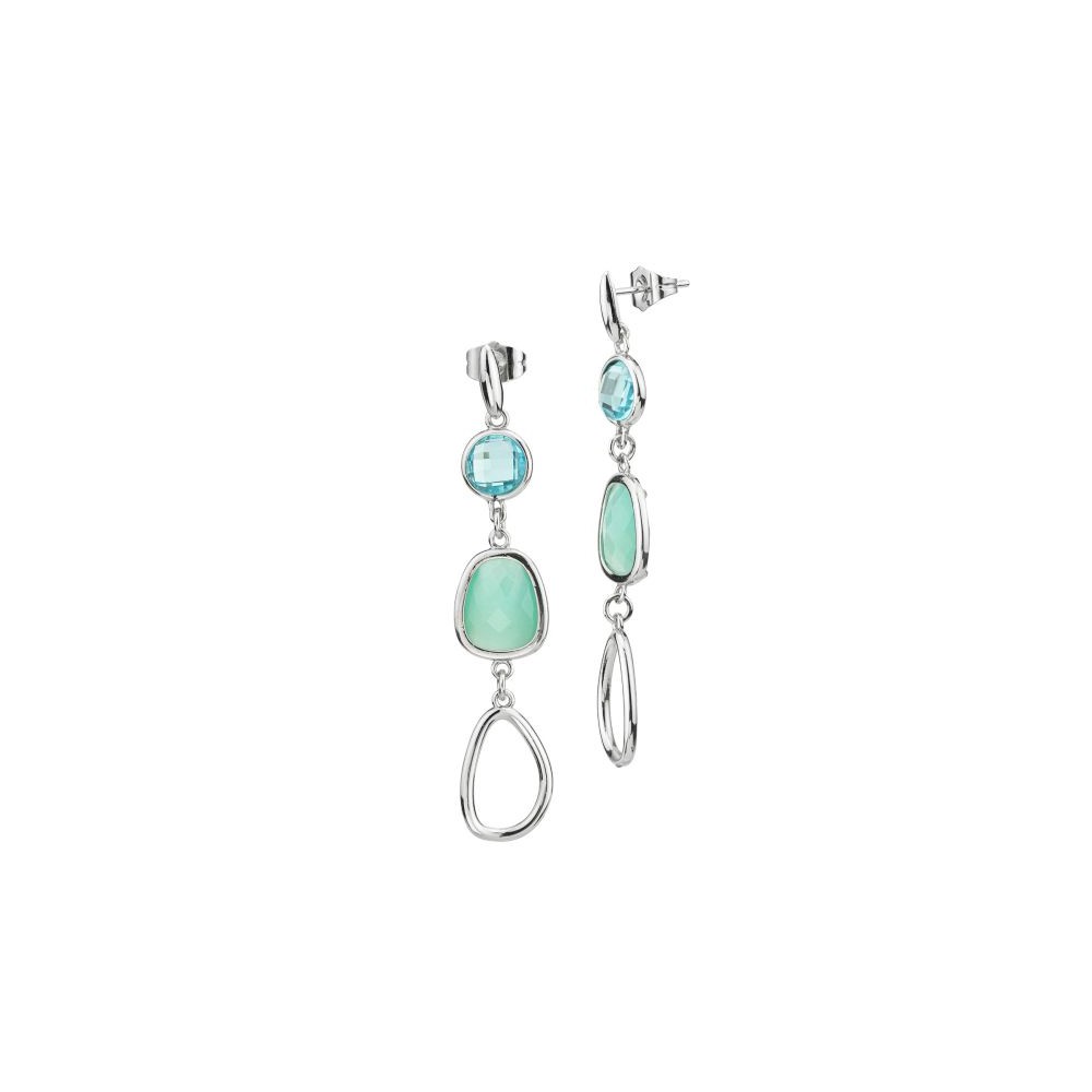 Orecchini pendenti con cristalli acquamarina e verde chiaro e modulo a goccia - Boccadamo XOR765