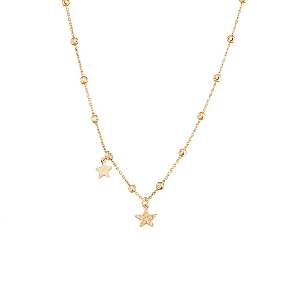 La Collana bonbon star - My little emotion è costituita da una collana con boule sfaccettate con una stella pendente laterale e impreziosita da una luminosa stella centrale con pietre bianche pavè. La lunghezza è di 38cm + 5cm di extension per regolarne la vestibilità.