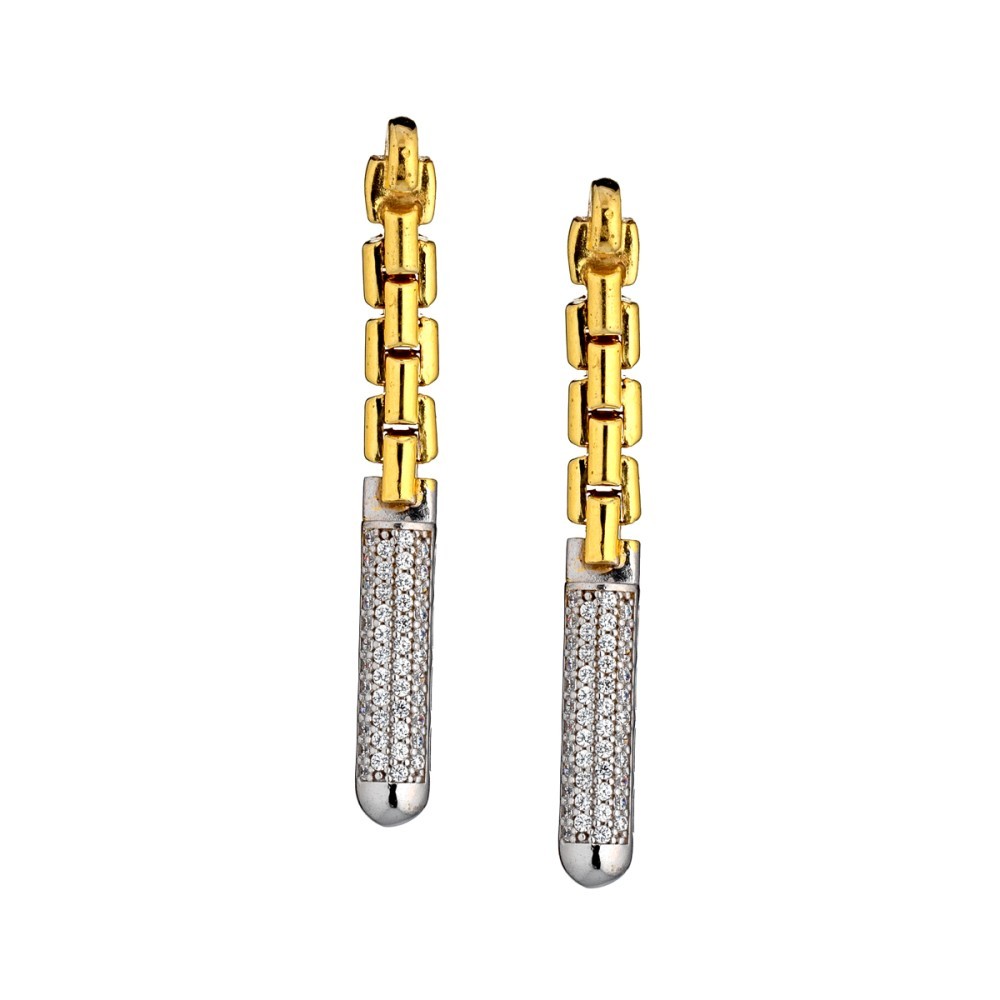 Gli Orecchini barre di luce - Twist sono in argento 925 dorato con all'estremità un pavè di pietre bianche. La lunghezza è di circa 4cm.