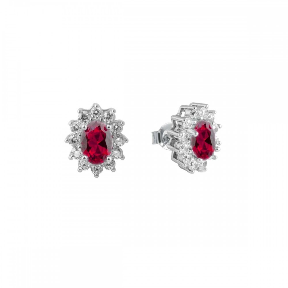 Orecchini in argento 925 con zirconi e rubino sintetico