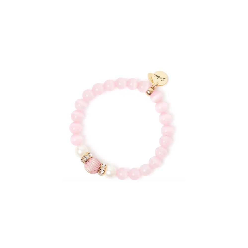 Scopri il piacere di indossare un bracciale elastico assolutamente affascinante e trendy. Design accattivante con un filo di luminose sfere traslucide impreziosito da due anellini di strass, due perle ed una boule rigata, per un unicum che impreziosisce loutfit. Un accessorio perfetto in qualsiasi occasione, in una versione dalle cromie del rosa e oro. Targhetta Sodini come pendente.