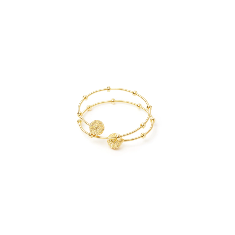 Questo raffinatissimo bracciale è l'ideale tocco finale per un look che non passa inosservato. Design con radioso filo argenteo che ospita degli spendenti anellini e due luminose boule a microsfere alle estremità, per un unicum di grande effetto. Un accessorio perfetto in qualsiasi occasione, in una versione dalle cromie dell'oro , con logo Sodini.